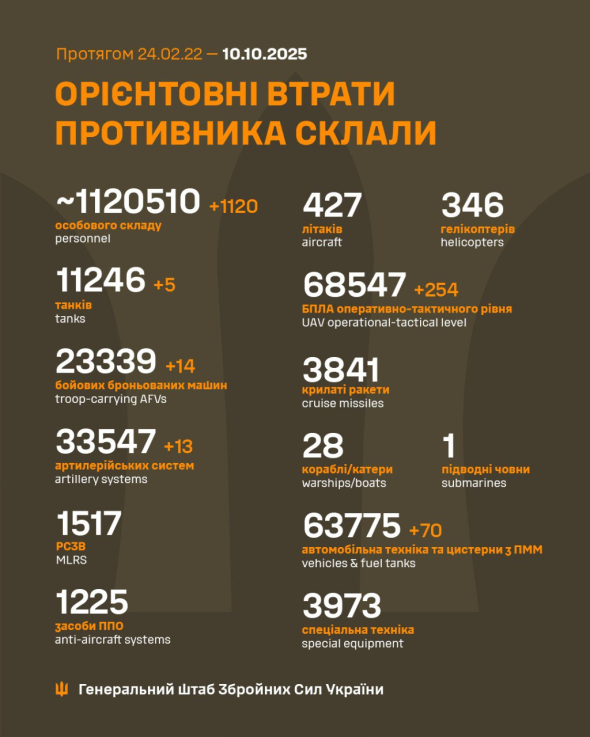 Втрати РФ в Україні сягнули 1 120 510.